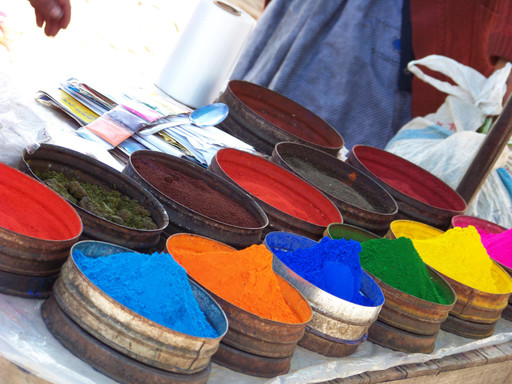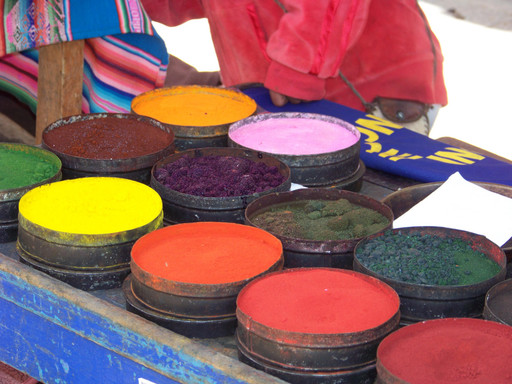 Hoy por suerte salió el sol y pude andar nuevamente en musculosa. Hoy tengo el gusto de estar escribiendo este capítulo del diario en un balcón colonial de una cafetería frente a la Plaza de Armas. Ayer fui a visitar Maras y Moray, y de paso en el camino nos llevaron también a visitar a una comunidad de tejedoras que preparan tintes naturales con colorantes provenientes de insectos y vegetales. Las lanas naturales obtenidas de animales son lavadas primero con la saponina procedente de una raíz y cuando están secas, realizan el hilado en un huso romboidal dándole forma a las hebras “amasándolas” entre los dedos índice y pulgar. Luego arman las madejas las cuales sumergen en los tintes colorantes diluidos en agua, a los cuales agregan sal o ceniza volcánica según se desee oscurecer o aclarar la tonalidad y una vez que están secas estas lanas coloridas, hacen sus tejidos en telar.