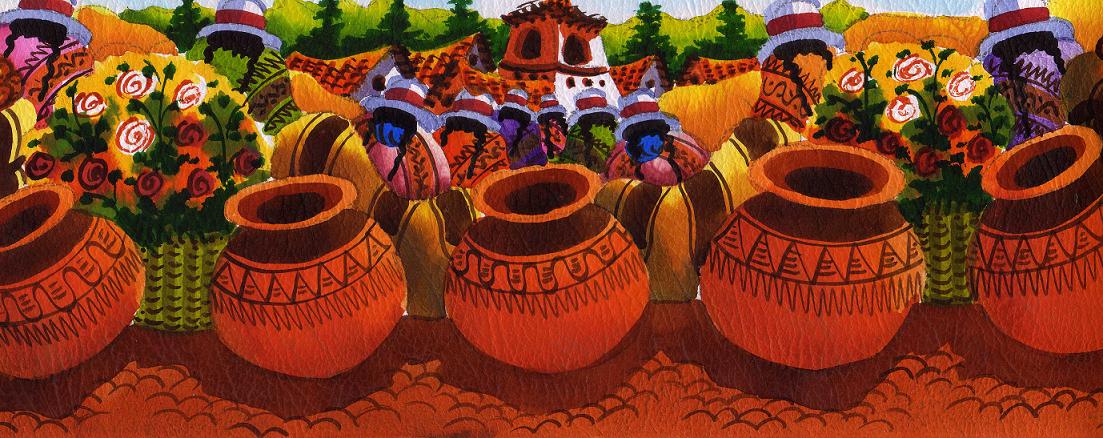 La pintura que yo me traje de recuerdo es una pequeña acuarela, de 12x35cm, que compré limitada tanto por el dinero disponible en ese momento como por la posibilidad de transportarla en mi mochila, para lo cual, la vendedora la colocó delicadamente enrollada en el interior de un tubo de cartón y así asegurarme su intacto traslado.